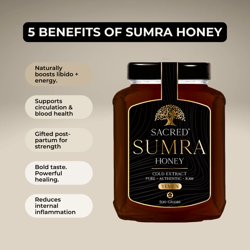 Traditionally used as a natural aphrodisiac and to support blood health, Sumra honey may also support digestion, soothe coughs and colds, and reduce inflammation. It’s rich in antioxidants and natural enzymes that promote gut health, respiratory ease, and overall vitality.